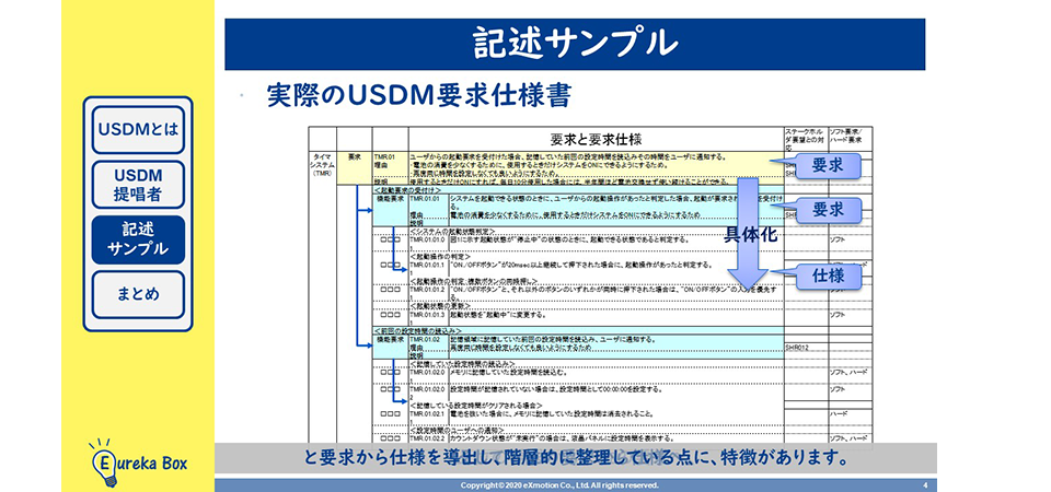 ※引用 Eureka Box(ユーリカボックス)USDM記述サンプル