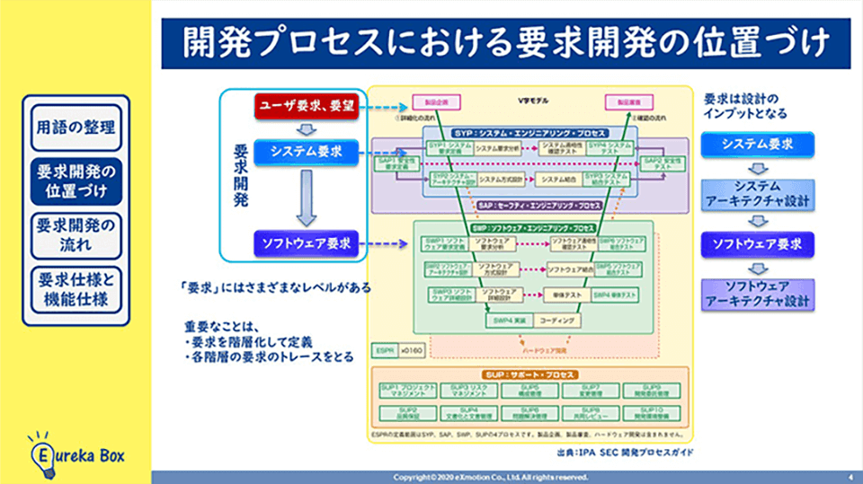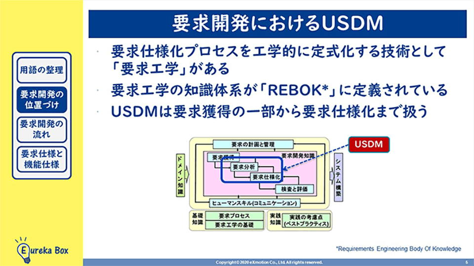 ※引用 Eureka Box(ユーリカボックス)USDM学習 要求開発の全体像