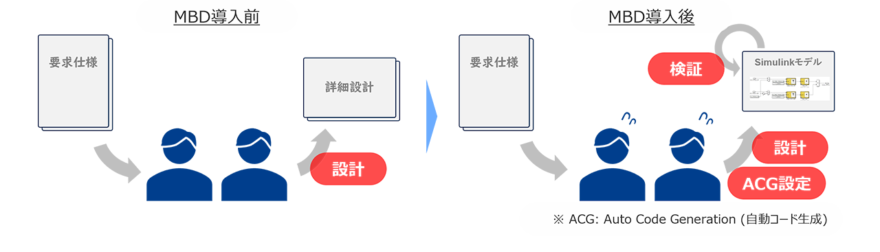 MBDでは、詳細設計の段階で緻密かつ網羅的な検証が必要なため(設計工程で検証まで出来てしまうため)、設計工程の負担が増加します。開発全体での工数が削減されても、その全ての工程で工数が削減されるわけではないことを理解する必要があります。