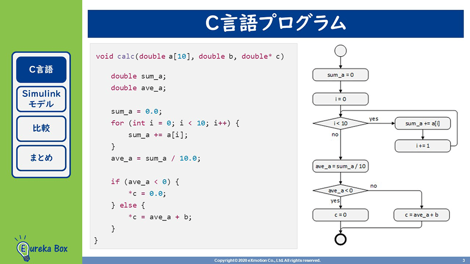C言語やフローチャートと、Simulinkモデルを比較してみましょう。