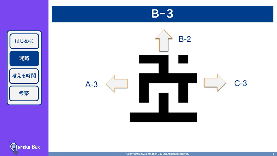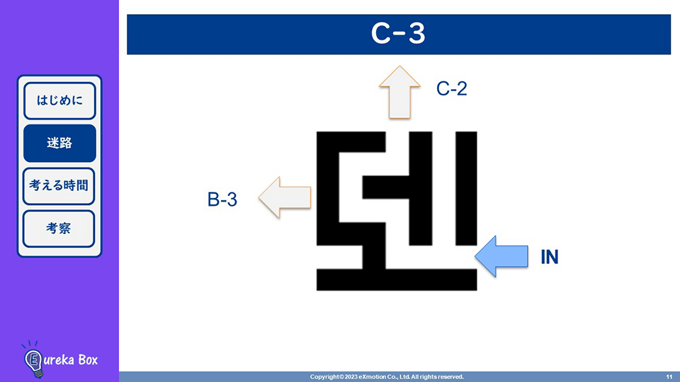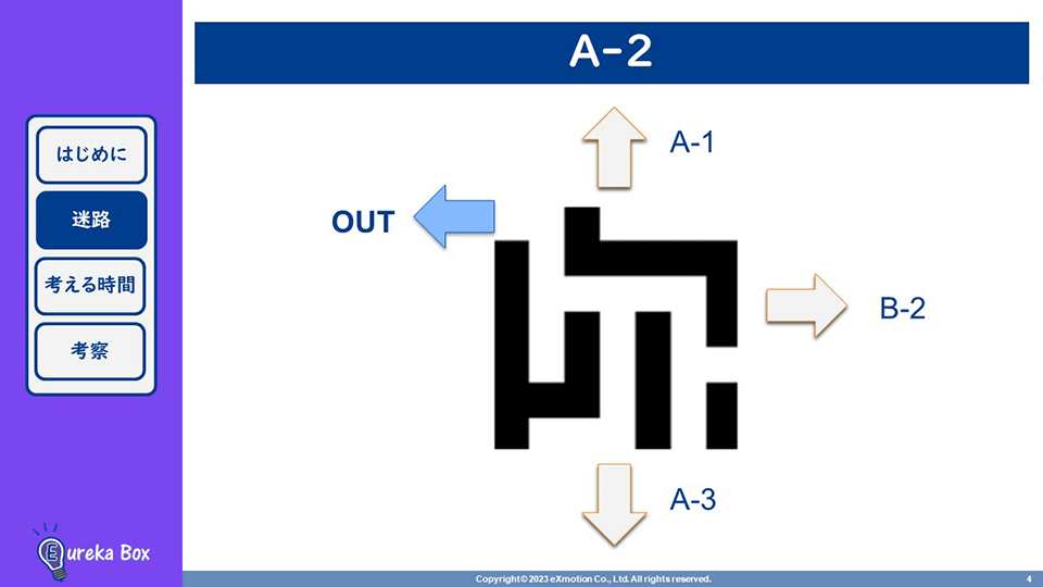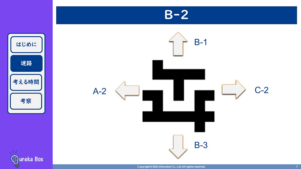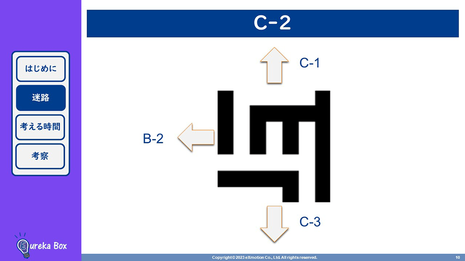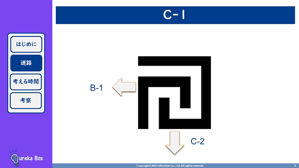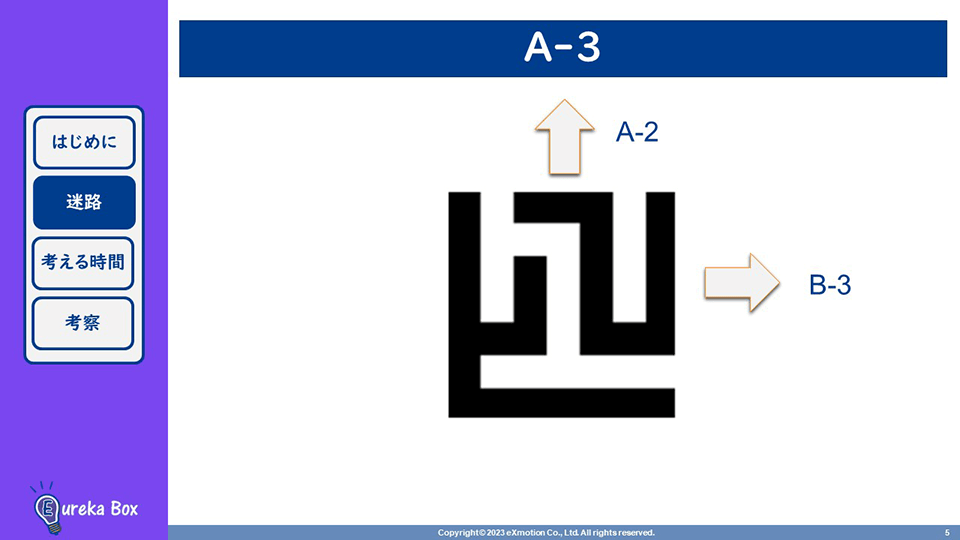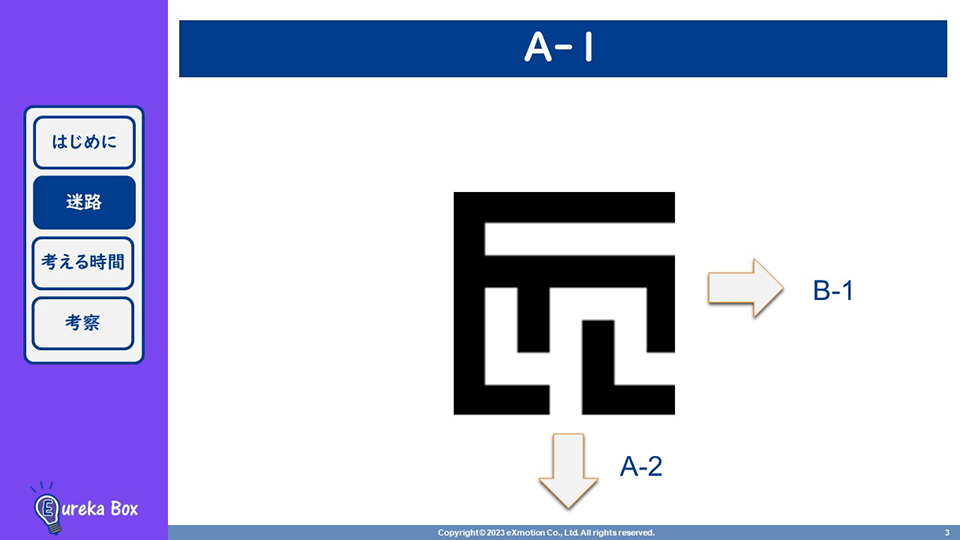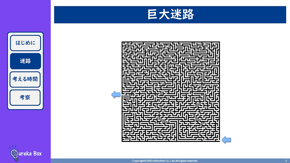 最初の演習では、皆さんに迷路を解いていただきます。迷路は大きな縮尺で書かれています。では始めましょう。