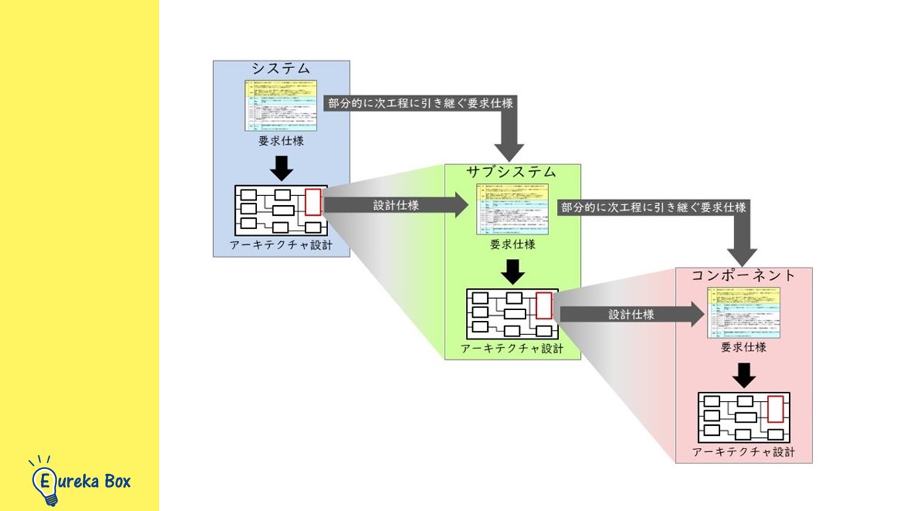 昨今のシステムは大規模化が進んでおり、システム全体を1つの要件定義書で書ききることは難しくなっています。そのため、システムレベルとソフトウェアレベル、システム全体とその中の個別システム、といったように段階を分けて要件定義や設計を行うのが一般的ですが、USDMは様々なレベルで共通して利用できることも強みです。